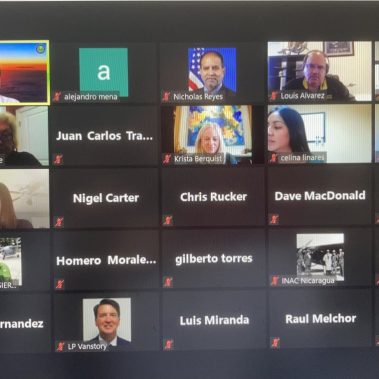 El 19 de noviembre del presente año, COCESNA celebró una reunión virtual con funcionarios de la FAA y representantes de las Autoridades de Aviación Civil de los Estados Miembros. La apertura de la reunión estuvo a cargo del Sr. Nicholas Reyes, Director del Hemisferio Occidental para la FAA y del Lic. Juan Carlos Trabanino, Presidente Ejecutivo de COCESNA.