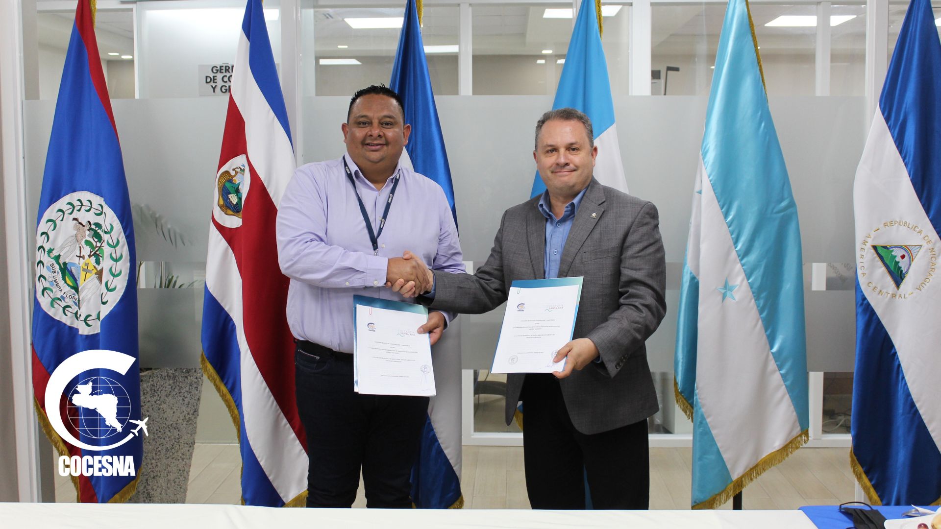 El Lic. Juan Carlos Trabanino Aguirre Director Ejecutivo-CEO de COCESNA, lleva a cabo firma de Convenio Marco de Cooperación y Asistencia entre la Alcaldía Municipal de Santa Ana del Departamento de Francisco Morazán, Honduras representada por su Alcalde Municipal el Sr. Jorge Alberto Sandres García.