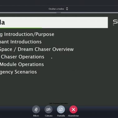 Siguiendo el espíritu de cooperación, colaboración y cooperación, Sierra Space / SNC realizo una reunión virtual para poder presentar la empresa, la nave espacial Dream Chaser, y la operación propuesta con el fin de proporcionar un entendimiento común de las operaciones futuras y planificadas. También quieren entablar conversaciones con cada uno de ustedes para trabajar en un LoA.