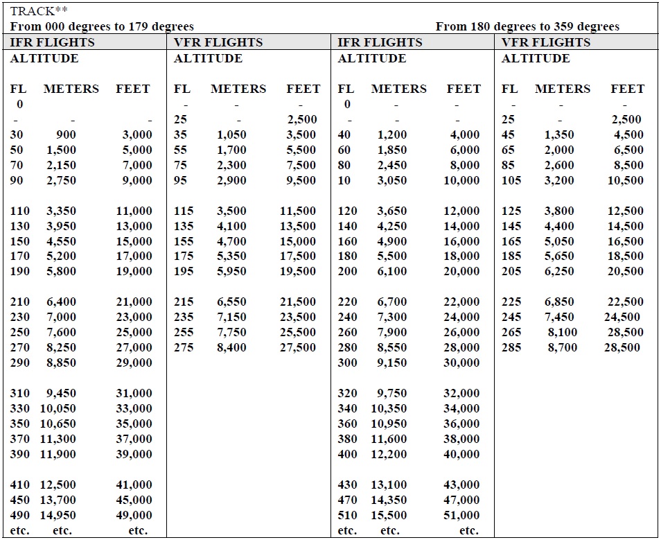 | Note: Flight levels are specified in a flight plan by number and not in terms